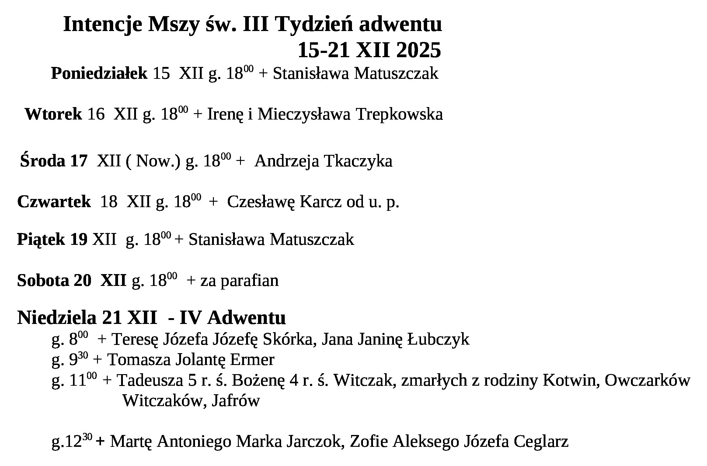 Intencje Mszy św.