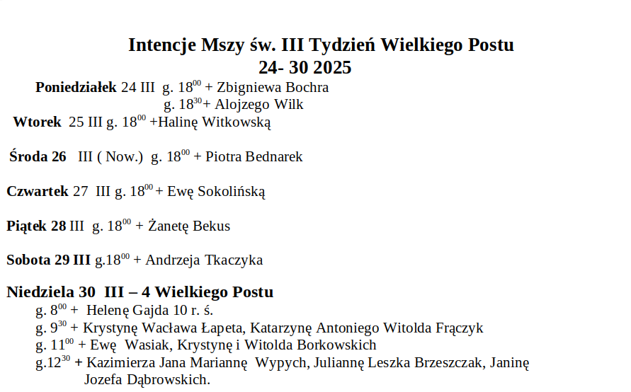 Intencje Mszy św. 24-30 III 2025