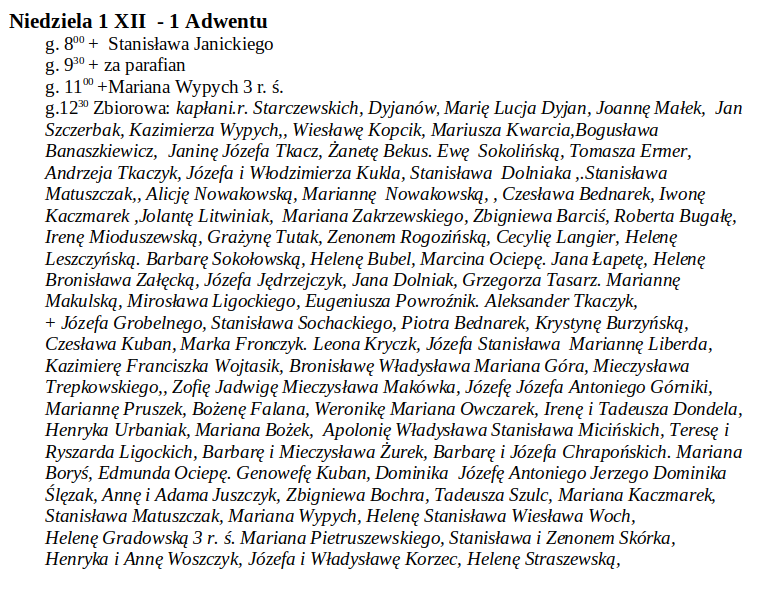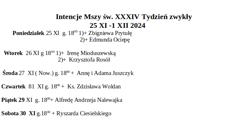 Intencje Mszy św. 25 XI – 1 XII 2024
