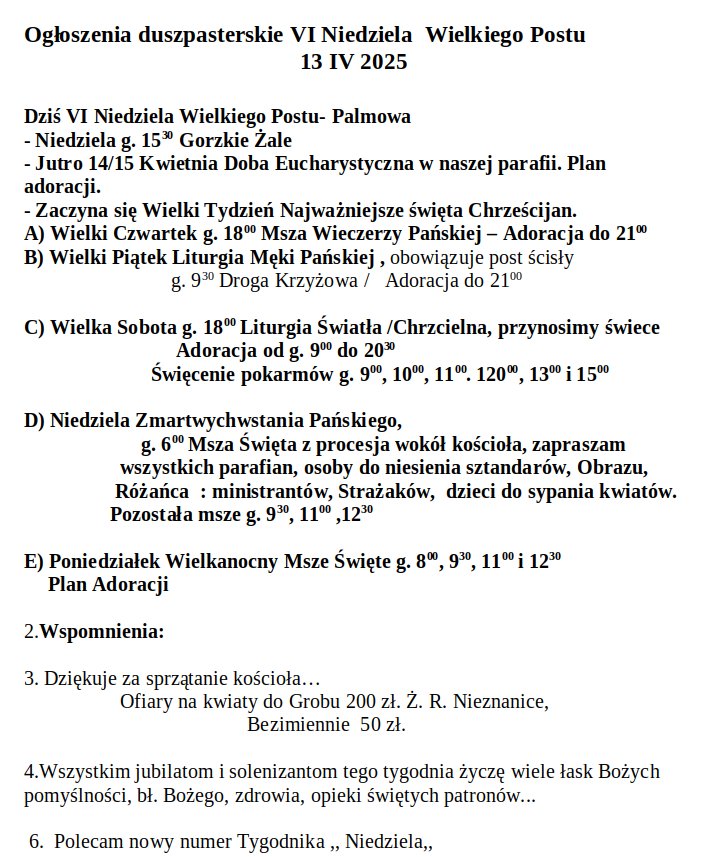 Ogłoszenia Duszpasterskie 13 kwietnia 2025