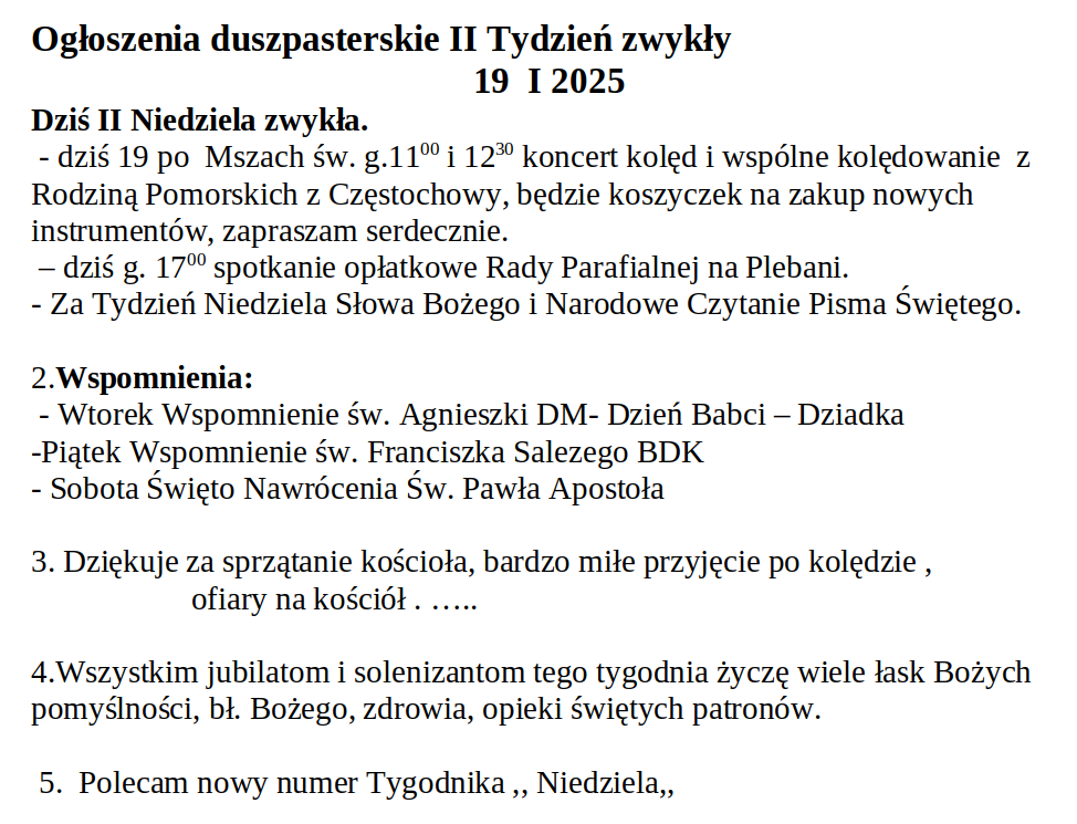 Ogłoszenia Duszpasterskie 19 stycznia 2025