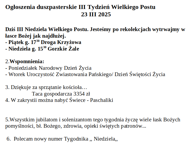 Ogłoszenia Duszpasterskie 23 marca 2025