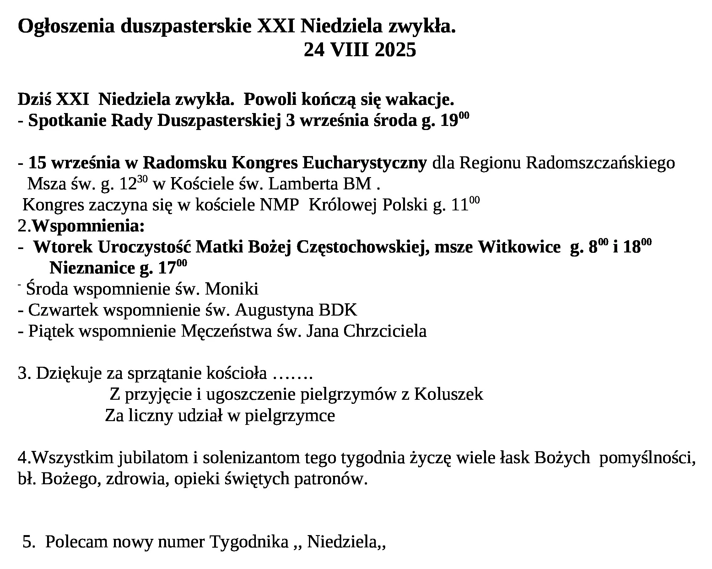 Ogłoszenia Duszpasterskie 24 sierpnia 2025