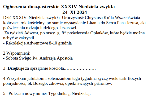 Ogłoszenia Duszpasterskie 24 XI 2024