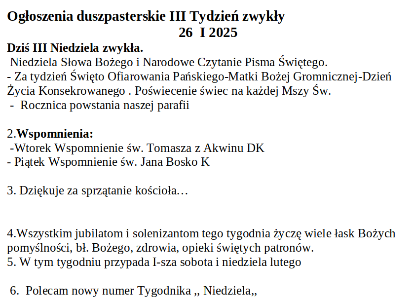 Ogłoszenia Duszpasterskie 26 stycznia 2025