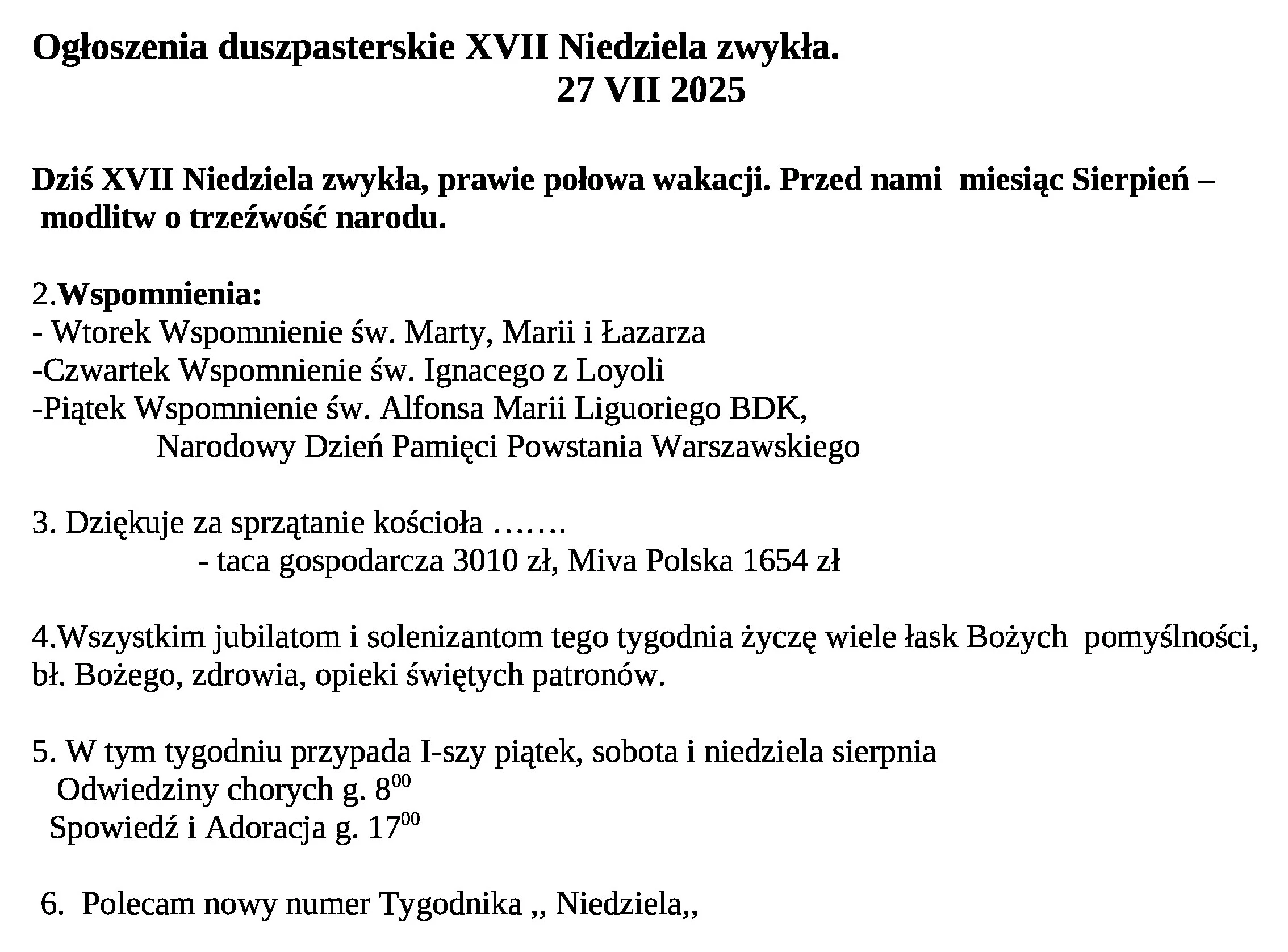 Ogłoszenia Duszpasterskie 27 lipca 2025