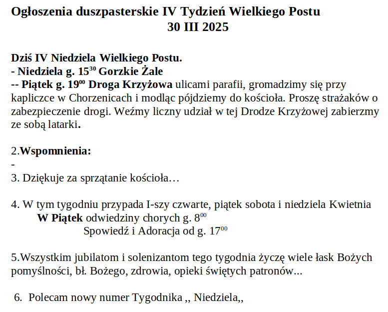 Ogłoszenia Duszpasterskie 30 marca 2025
