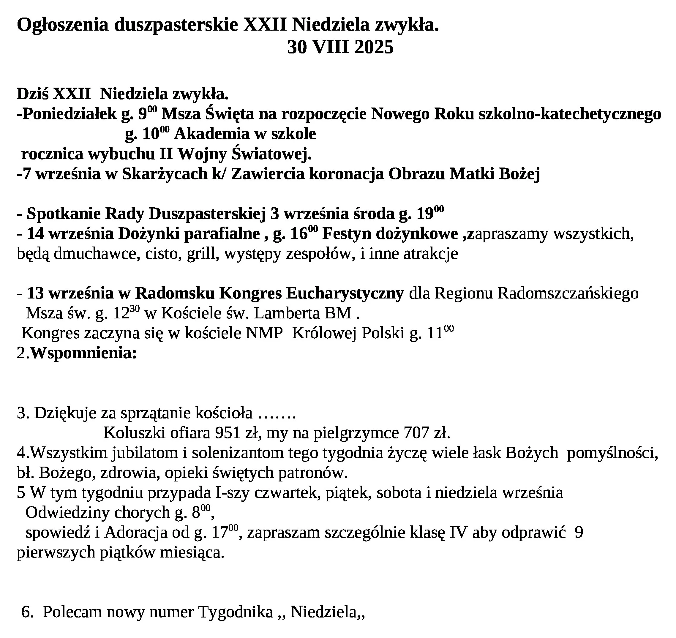 Ogłoszenia Duszpasterskie 30 sierpnia 2025