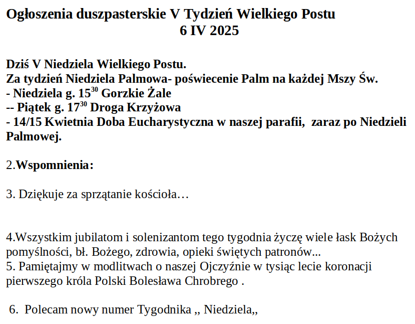 Ogłoszenia Duszpasterskie 6 kwietnia 2025