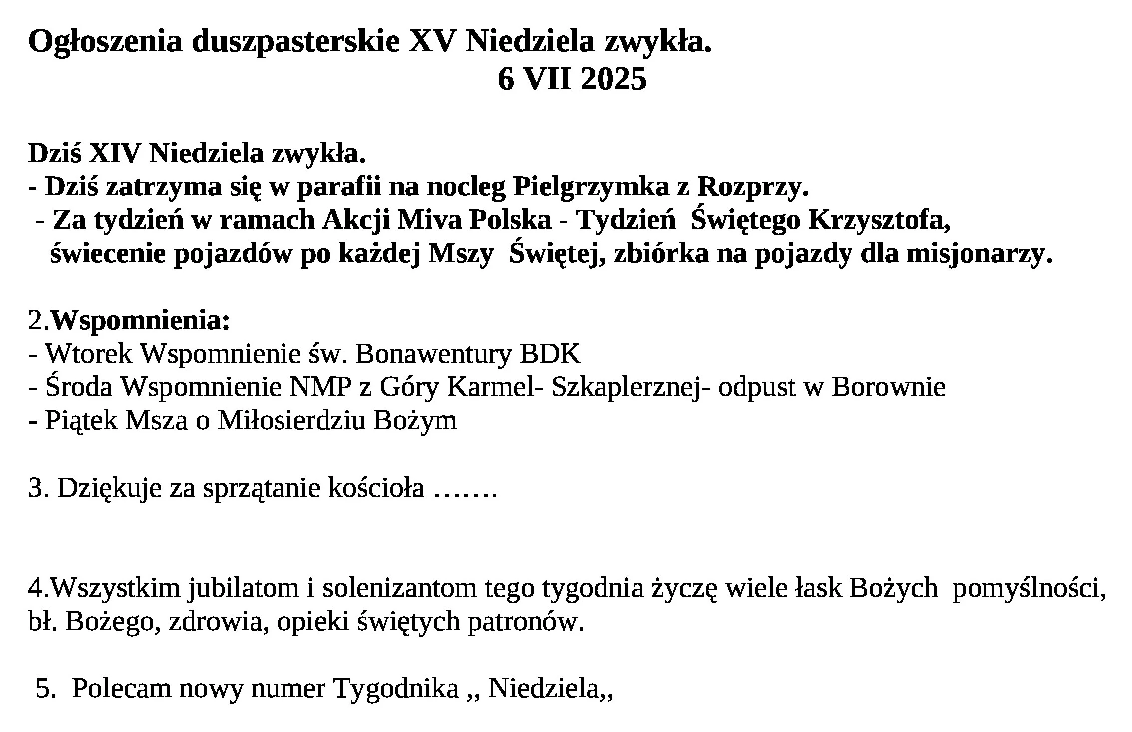 Ogłoszenia Duszpasterskie 6 lipca 2025