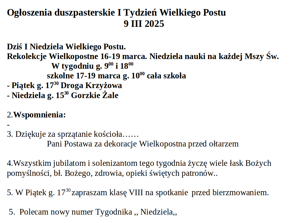 Ogłoszenia Duszpasterskie 9 marca 2025